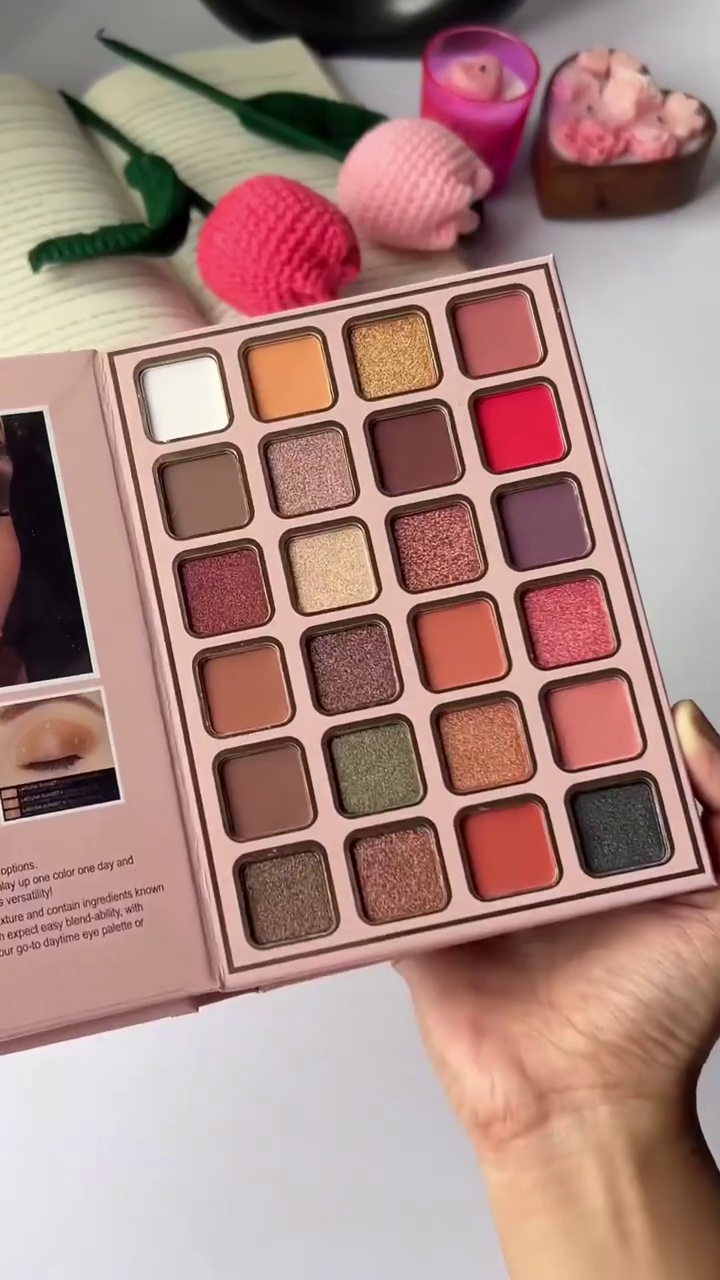 Featuring a balanced mix of bold, vibrant hues and soft, neutral tones, the palette offers versatile options for every occasion. Choose from shimmering highlights, satin finishes, and matte textures to craft anything from subtle daytime looks to striking evening glam. -