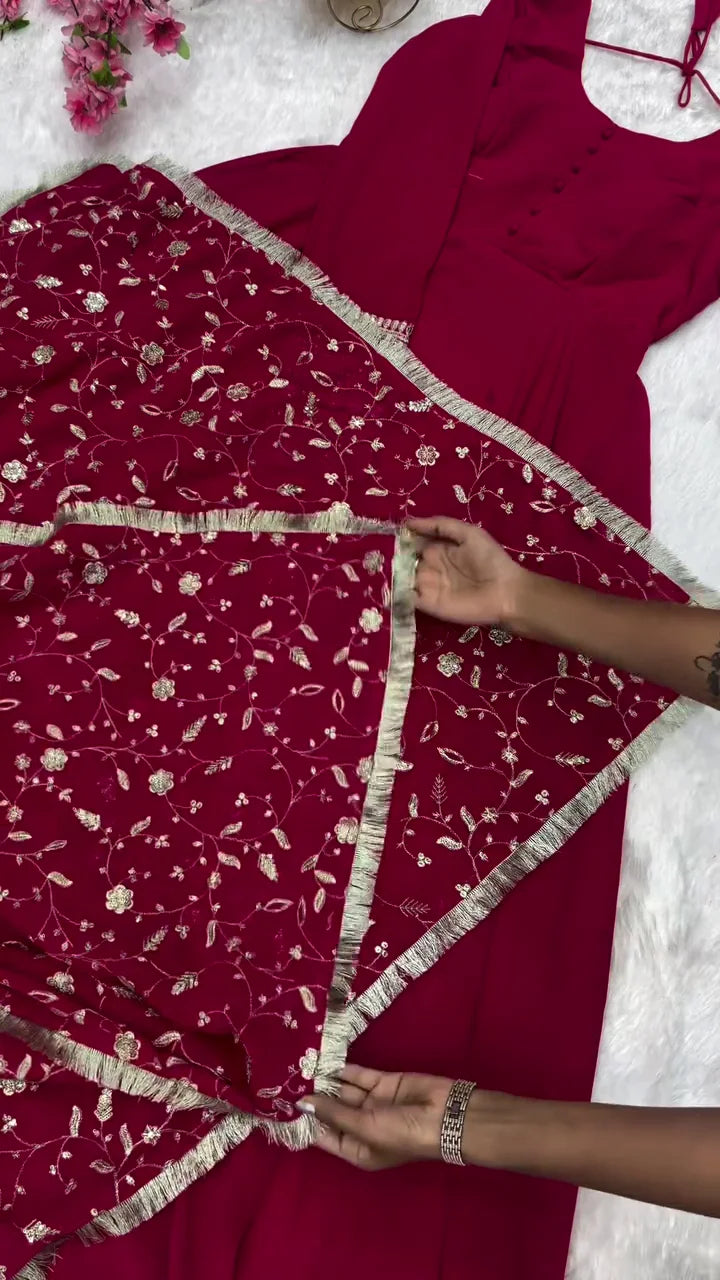 Elegant Maroon Anarkali Suit – Classic full-length design with a rich and royal appeal.