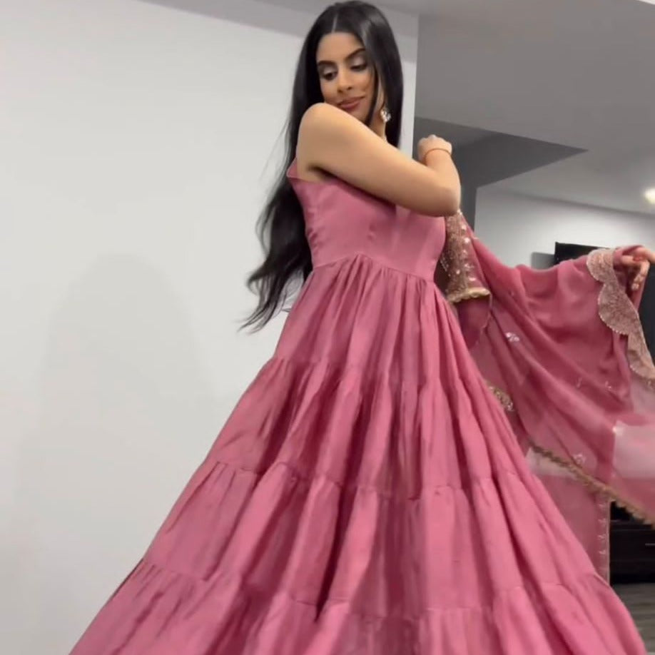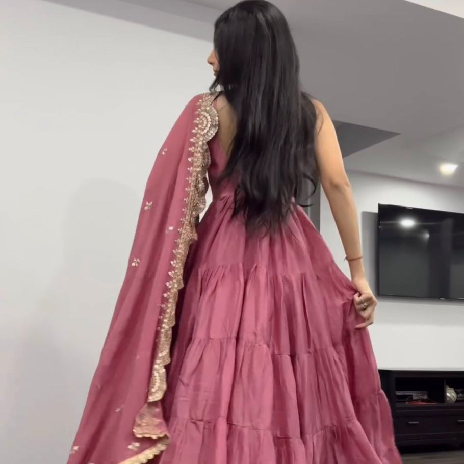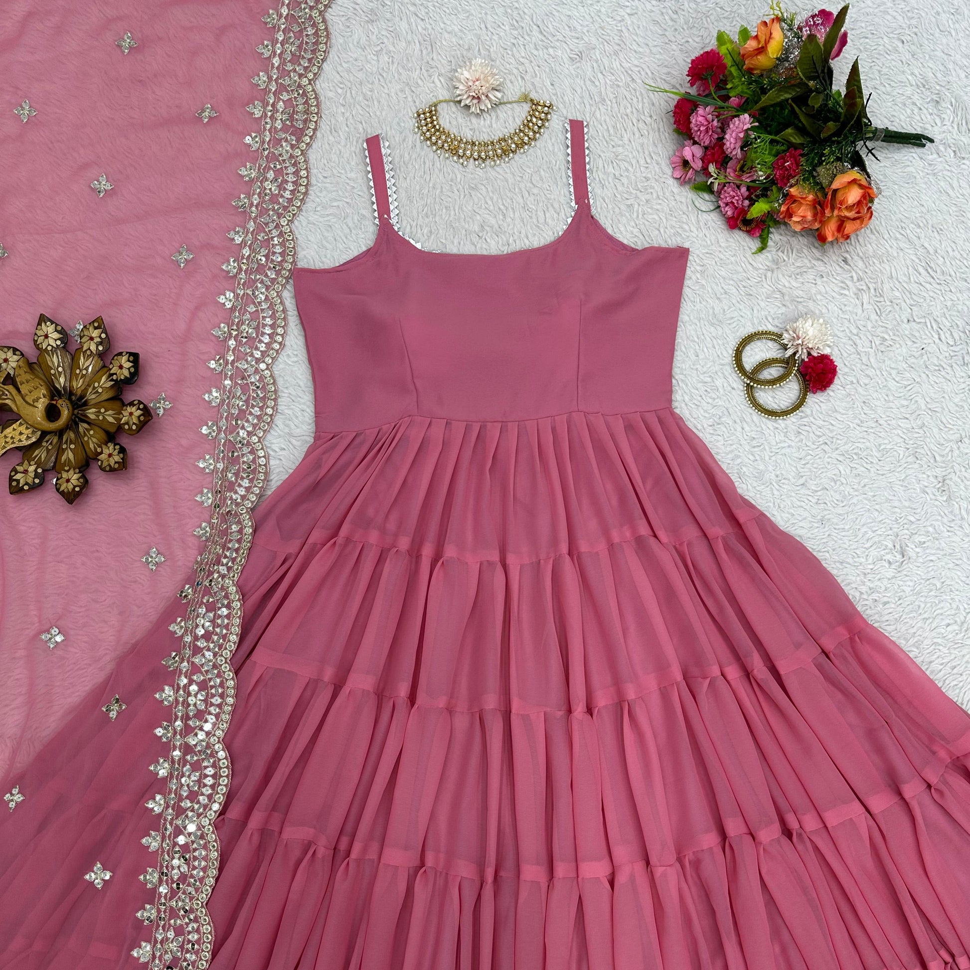 Top Fabric :heavy Georgette With Attached Pad With Extra Sleeve Fabric And Fully 10 Meter Ruffle Flair