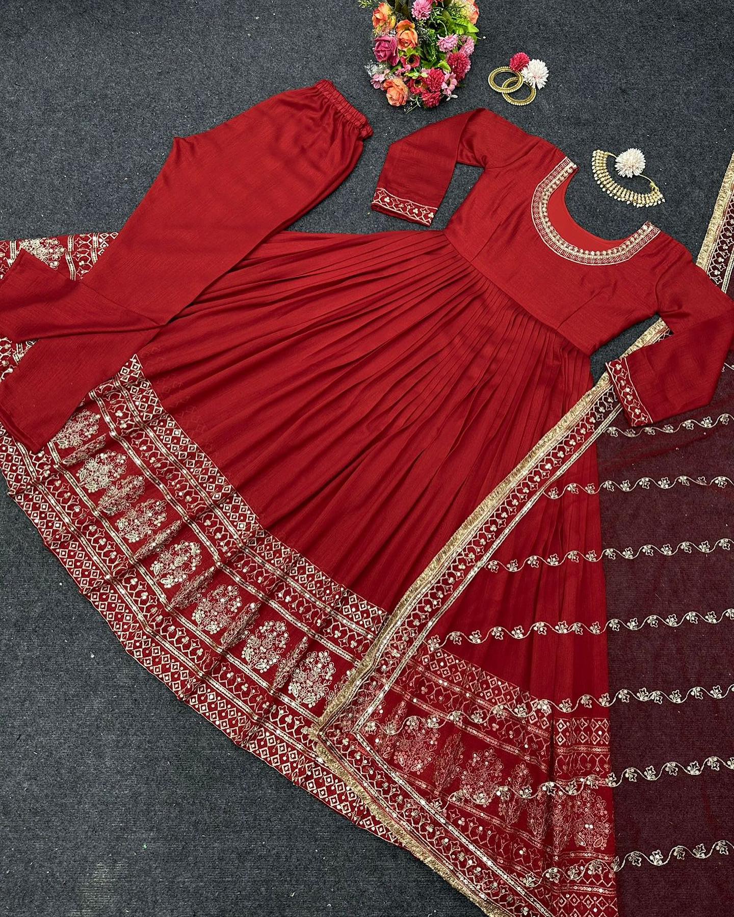 Work Full Heavy Embroidery Sequence Work With Full Sleeve And Attached Pad