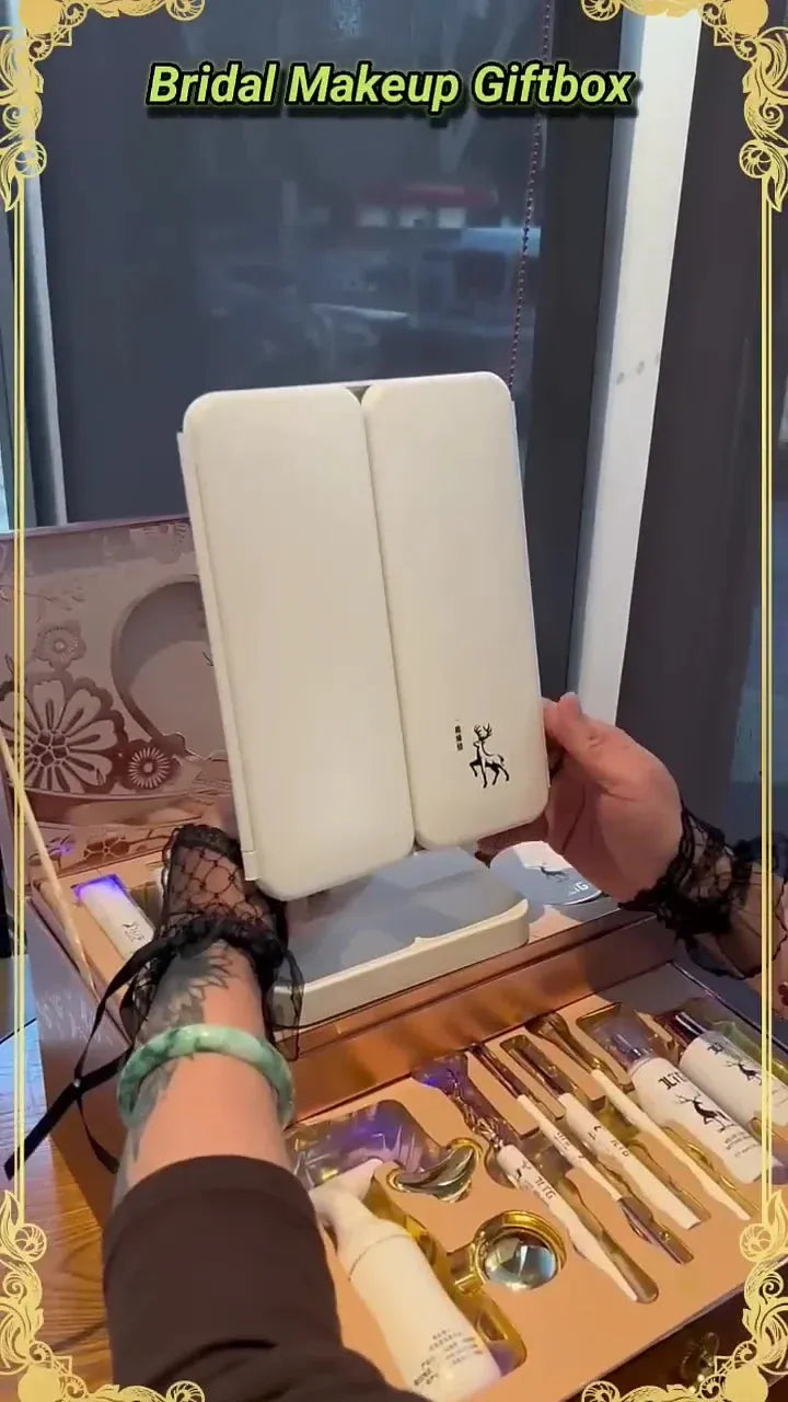 Celebrate her big day with this all-inclusive luxury bridal makeup gift box, curated to deliver elegance, beauty, and self-care in one stunning package. Housed in a sophisticated case with a built-in LED mirror, this set is thoughtfully filled with skincare essentials, premium cosmetics, facial tools, and pro-quality brushes—everything a bride needs to glow before, during, and after the ceremony.