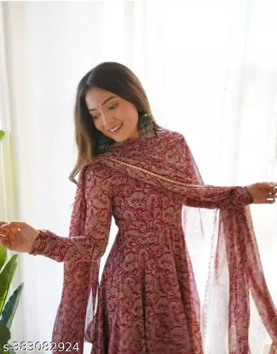 New Trendy Georgette With Digital Printed Gown And Dupatta Set For Women