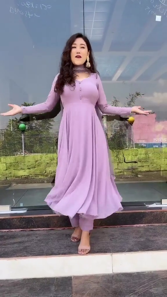 Name : Purple Color Pure Soft Fox Georgette Fully Flair Gown,duppta Set Ready To Wear Fully Sttiched