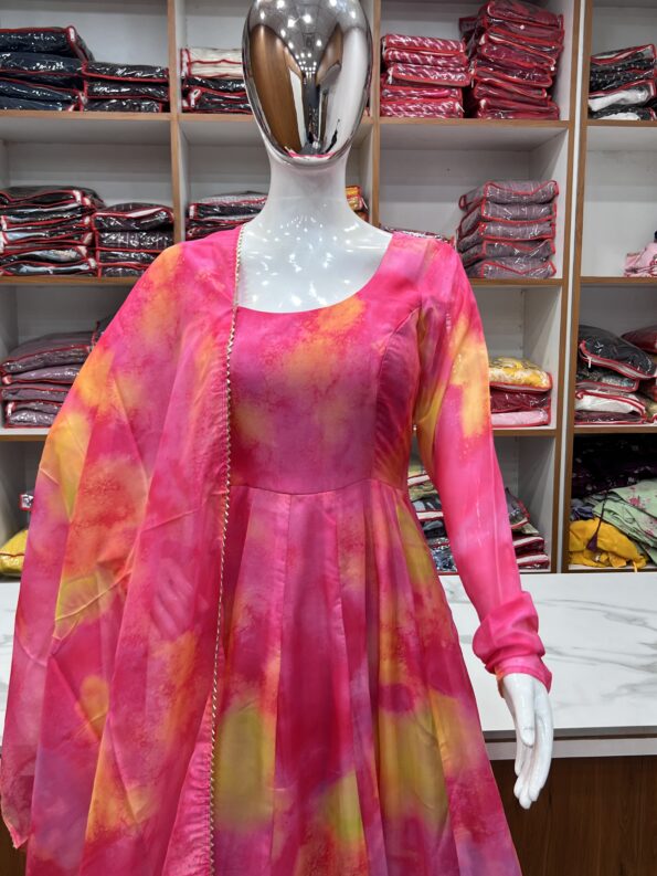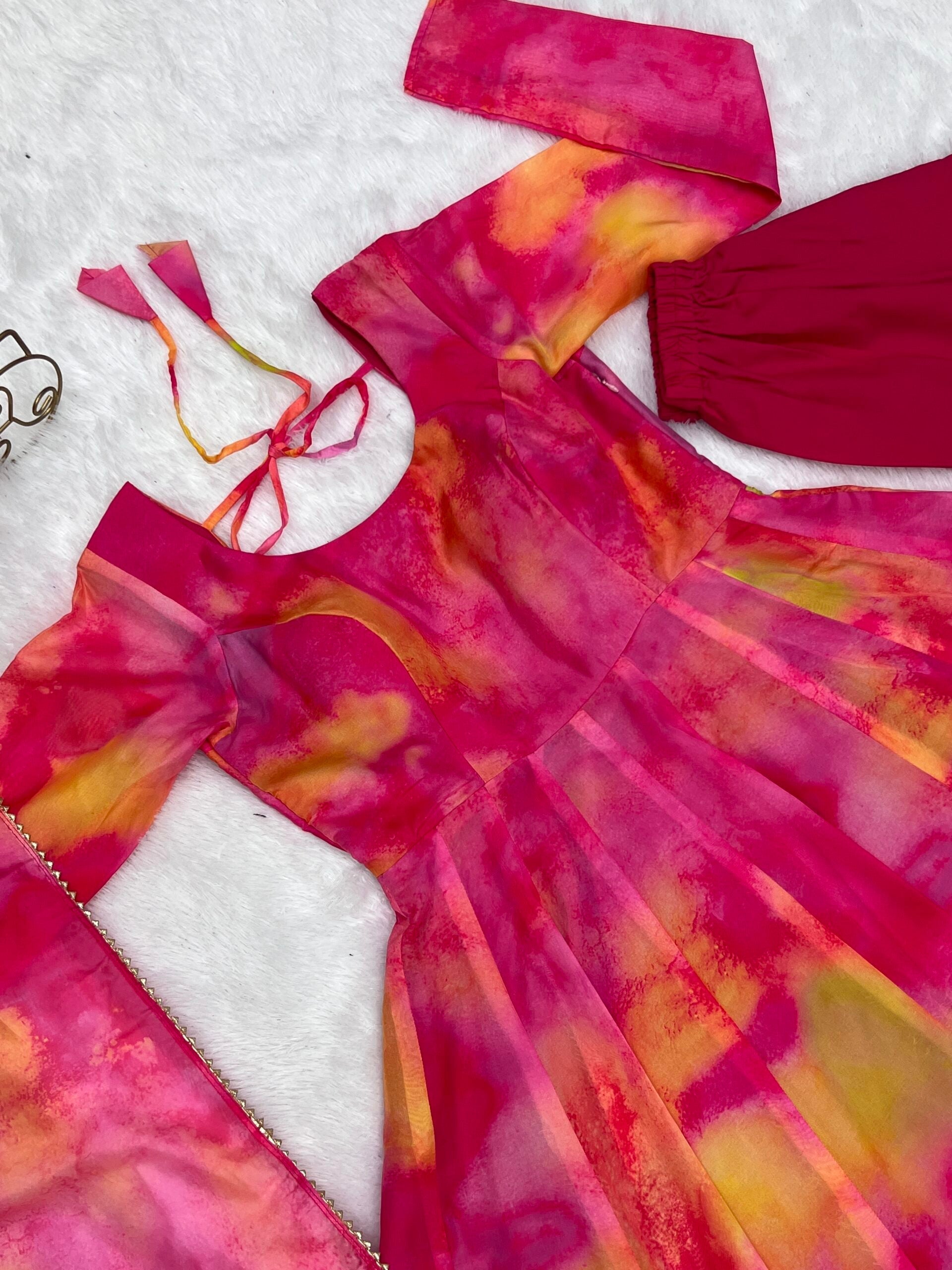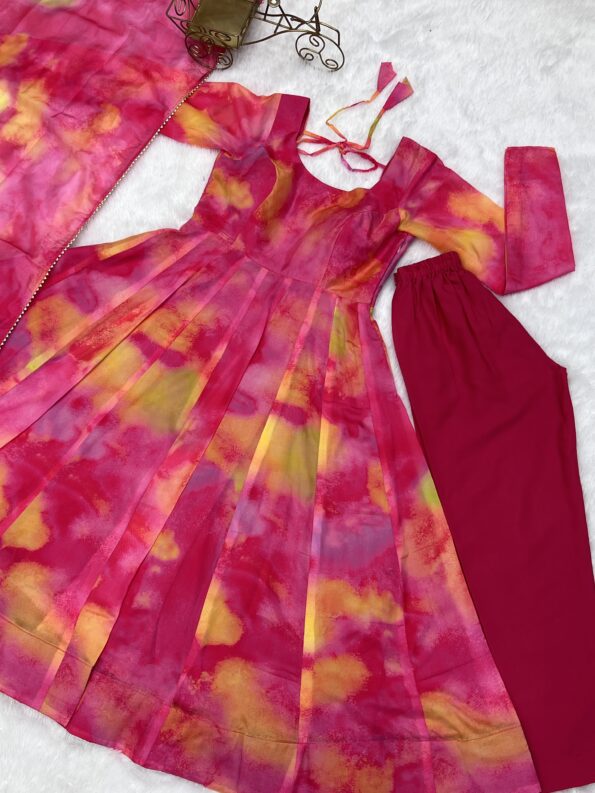 Pure Soft Organza Silk Fabric Fully Flair Kali Pattern And Canvas Patta With Duppta Set Pent Ready To Wear
