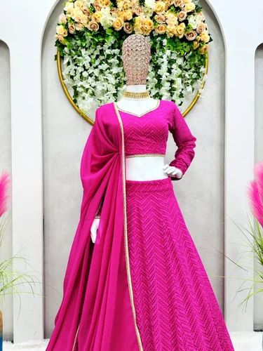Rani Pink Color Embroidered Attractive Party Wear Georgette Lehenga Choli Has A Regular-fit And Is Made From High-grade Fabrics And Yarn