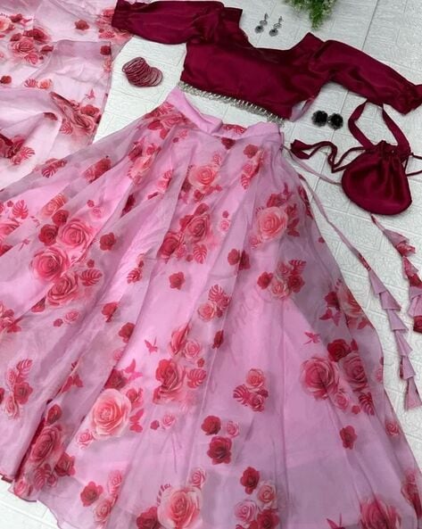 Exclusive Light Pink Heavy Organza Digital Printed Lehenga Choli Introducing Our Exclusive Light Pink Heavy Organza Digital Printed Lehenga Choli, A Stunning Piece Perfect For Any Special Occasion. The Blouse Is Made From Pure Jimmy Organza Silk And Is Fully Stitched With A Size 38 Padded Blouse And Margin Given. The Lehenga Is Made From Pure Jimmy Organza Silk And Features A Beautiful Digital Print With An 8-meter Flair And Canvas Patta. The Dupatta Is Made From Jimmy Organza Silk And Georgette With A Pearl Lace Border, Adding An Elegant Touch To The Overall Look. The Lehenga Choli Set Comes